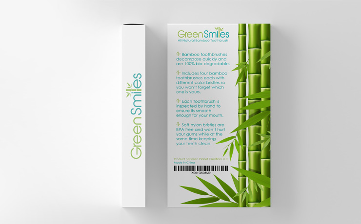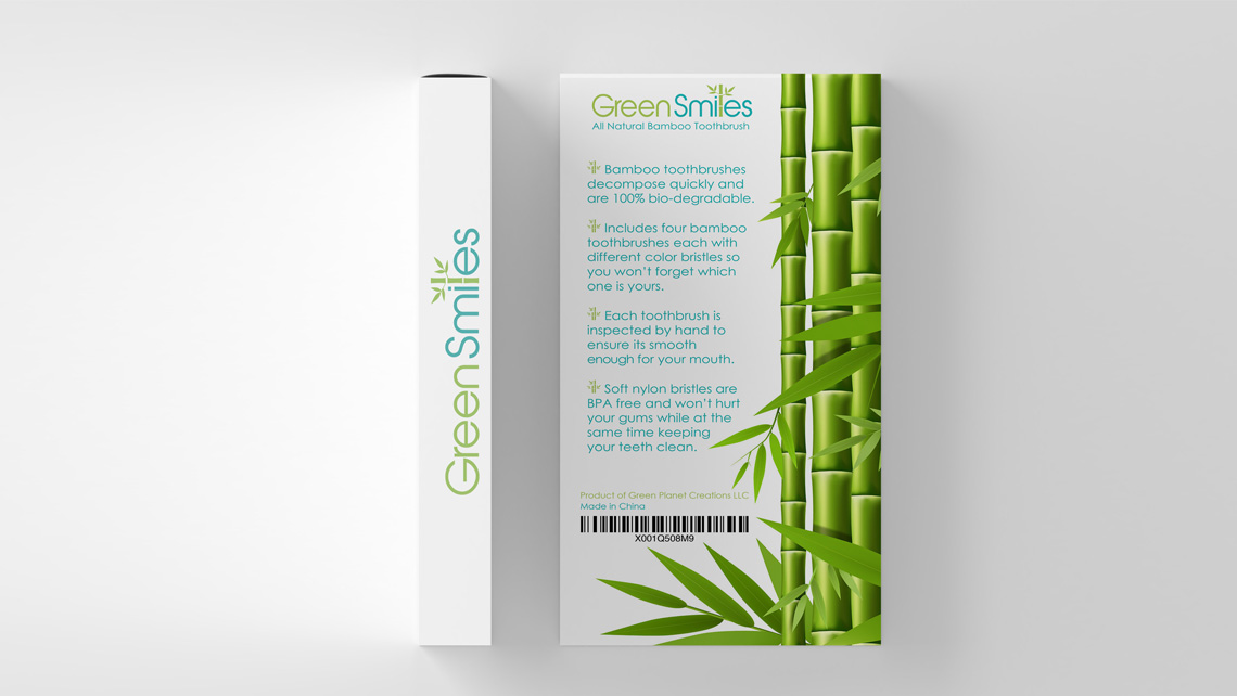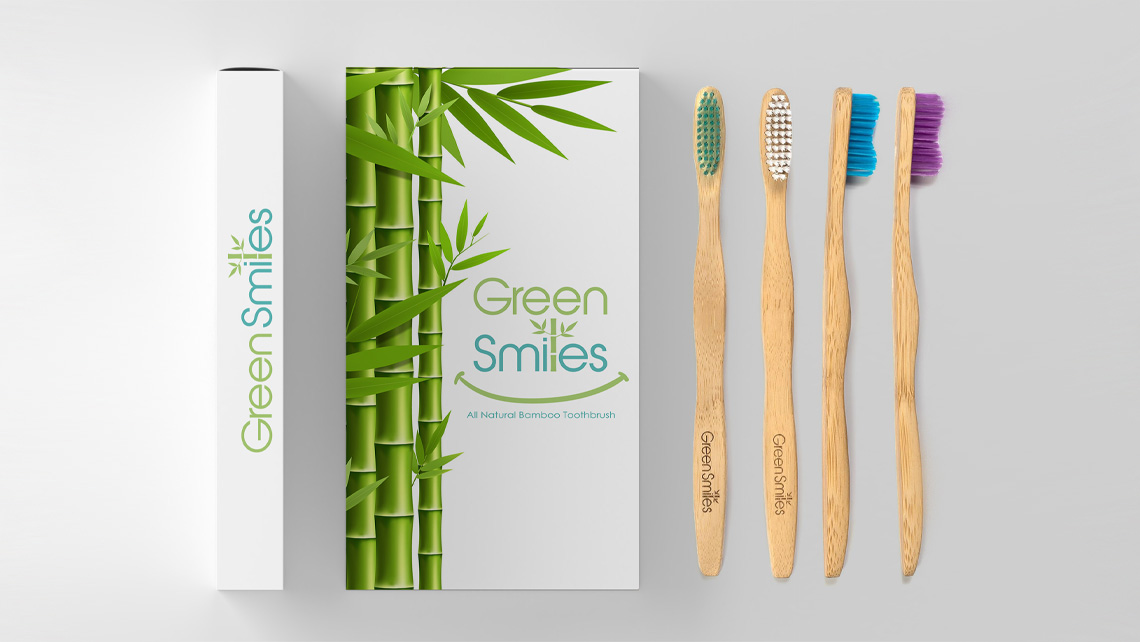Développement d'une identité visuelle, d'un logo et d'un packaging pour une marque de brosses à dents en bambou. Le sourire graphique représente non seulement la santé bucco-dentaire mais aussi la joie et la satisfaction de se brosser les dents avec cette marque.