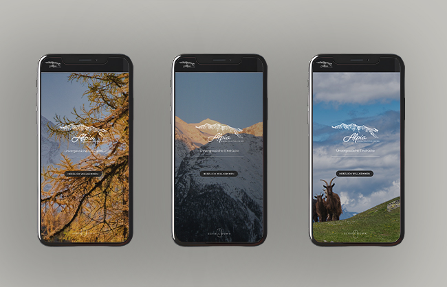 Des images grand format de paysages suisses et d’intérieurs d’appartements ajoutent une dimension immersive, pensée pour favoriser le contact de potentiels clients.