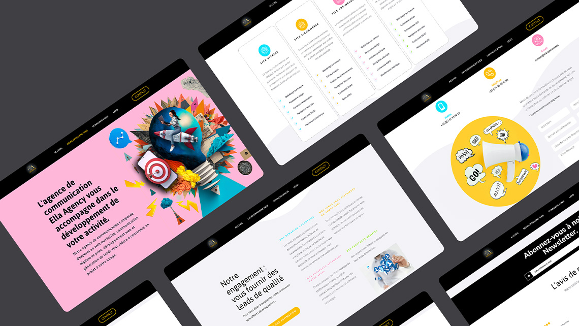 Développement d'une identité visuelle percutante qui reflète les valeurs et la mission de l'agence. Palette de couleurs moderne, typographies élégantes et éléments graphiques distinctifs, assurant une reconnaissance instantanée et une forte présence de marque.
