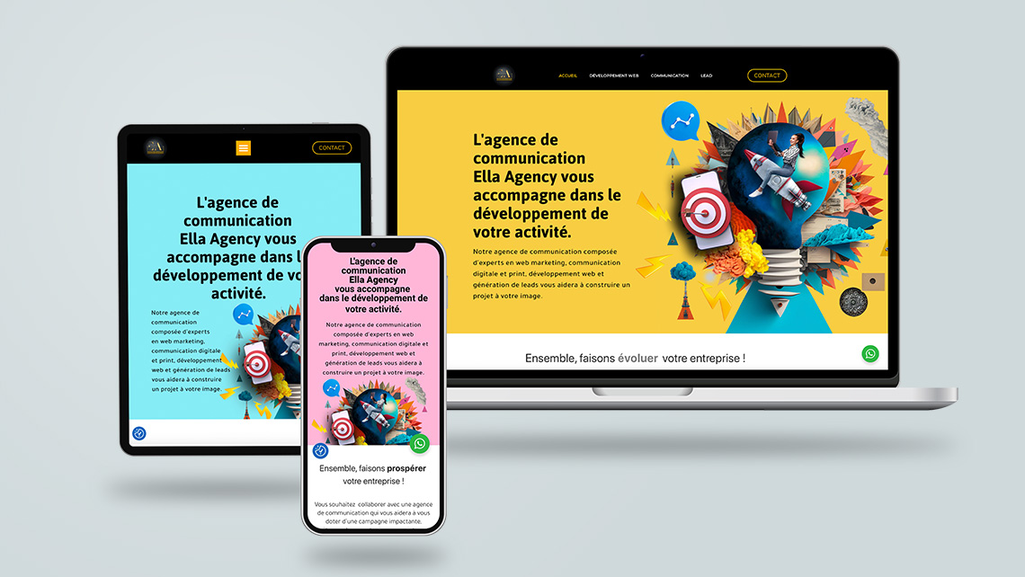 Site web intuitif mettant en valeur les services et réalisations de l'agence. Design responsive assurant une expérience utilisateur optimale sur tous les appareils. Intégration de fonctionnalités interactives pour faciliter la communication et l'engagement avec les clients potentiels.