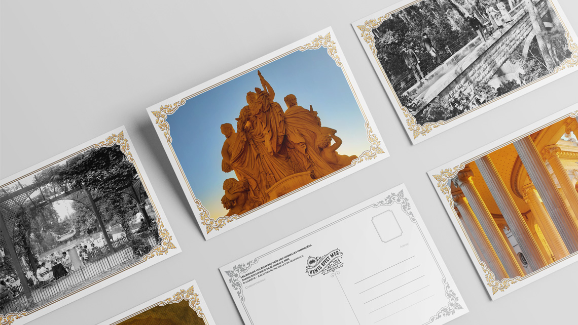 Conception d’un logo, d’une série de cartes postales et autres produits de merchandising pour un projet éditorial autour du Palais Longchamp et de son Parc Zoologique à Marseille.