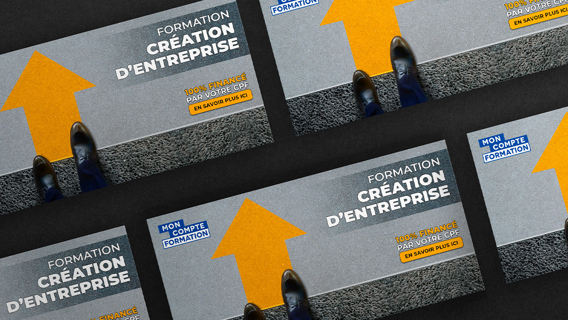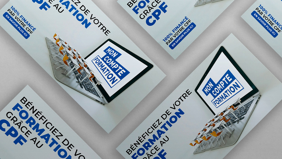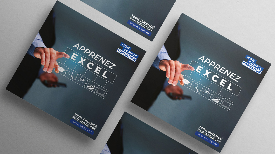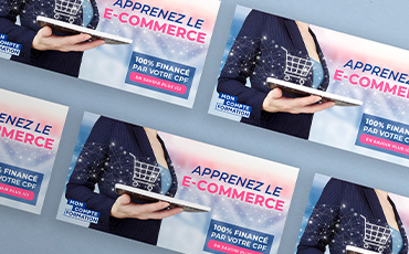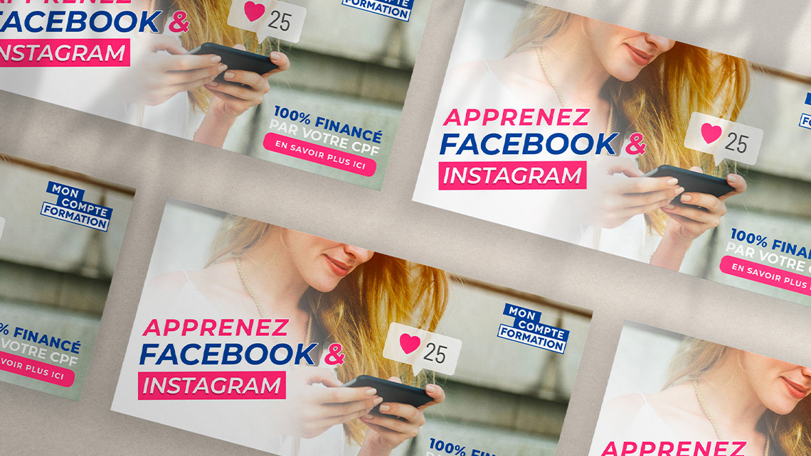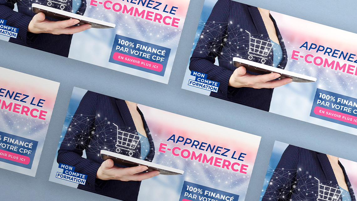 Conception d'une série de bannières pour une campagne publicitaire en ligne. Chacune d'entres elles a été méticuleusement pensée et créée en tenant compte des formations spécifiques et de l'identité visuelle du client.