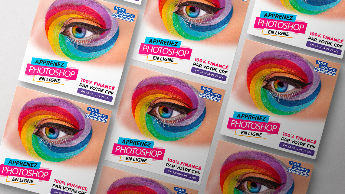 Conception d'une série de bannières pour une campagne publicitaire en ligne. Chacune d'entres elles a été méticuleusement pensée et créée en tenant compte des formations spécifiques et de l'identité visuelle du client.